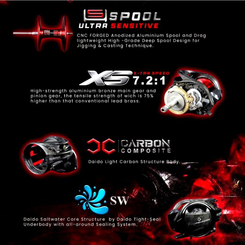 Joran Pancing Daido Original Reel Daido King Predator SW BC OH 300L 400XL King Predator Ghost Carbon Body Bonus Handle