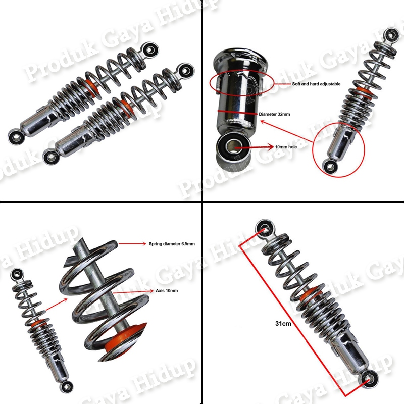 【】2PCS SEPEDA LISTRIK 31CM UNIVERSAL PERFORMA TINGGI PEREDAM KEJUT BELAKANG UNTUK MOTOR SKUTER,E SEPEDA MUSIM SEMI SHOCK BELAKANG AKSESORI KENDARAAN LISTRIK