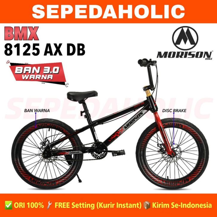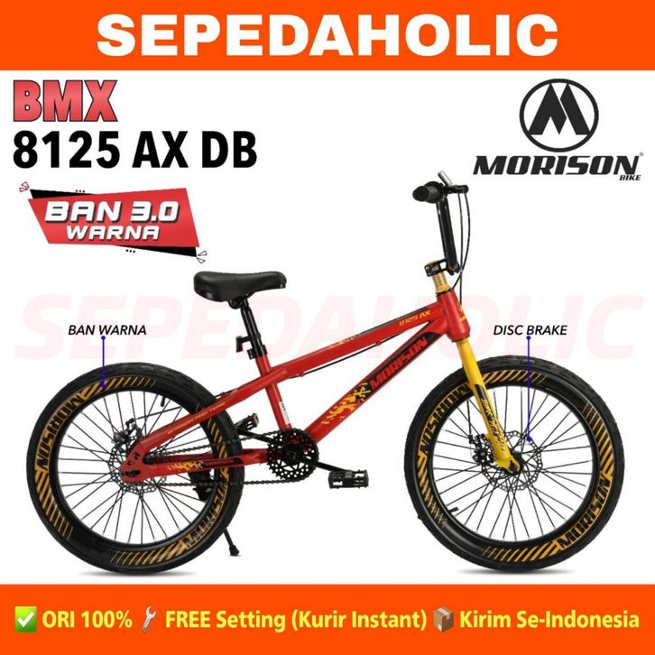 Sepeda Anak Laki BMX MORISON 8125 AX Ban Jumbo 3.0 & Ban 2.40 Ukuran 20 Inch Usia 8-10 Th Rem Biasa & Rem Cakram