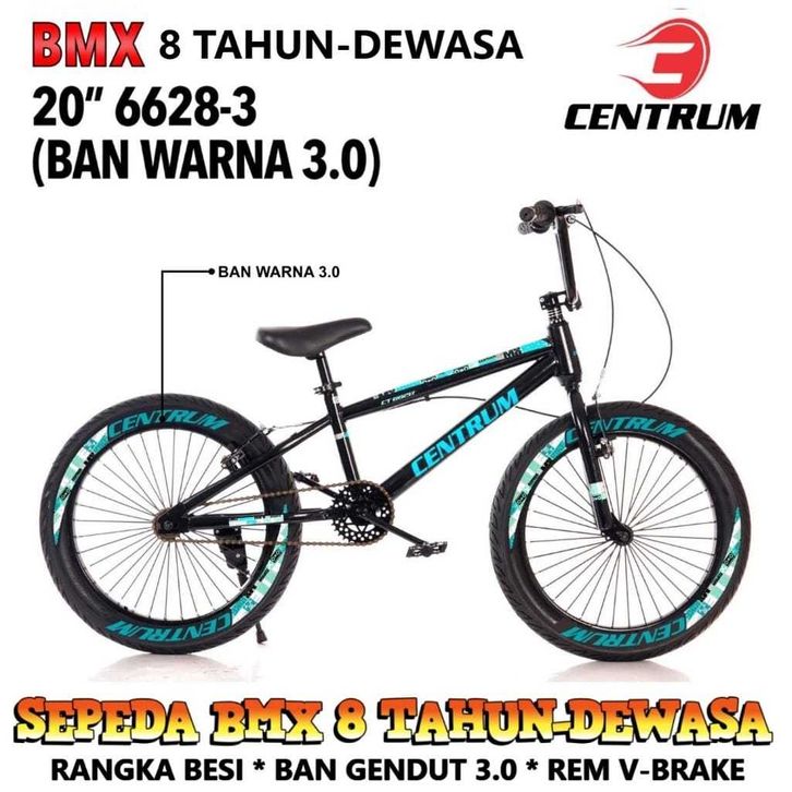 Sepeda Anak Laki BMX CENTRUM TYPE 6628-3 BAN WARNA 3.0 / 2.4 UKURAN 20 INCH