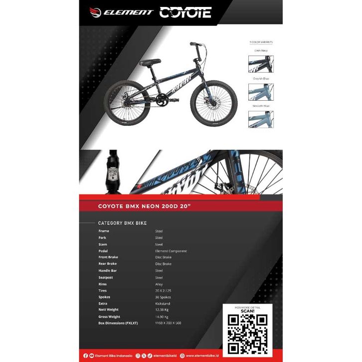Sepeda Anak Laki BMX 20" ELEMENT COYOTE NEON 200 / 200D BAN 2.125 / BAN 3.0 GEDE - REM CAKRAM DISCBRAKE