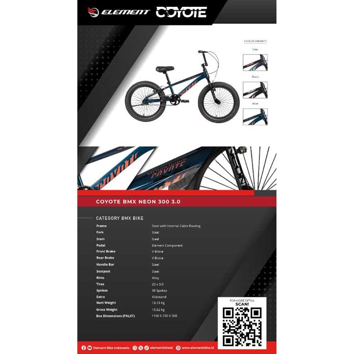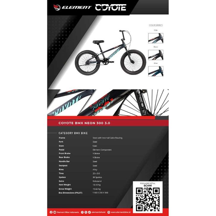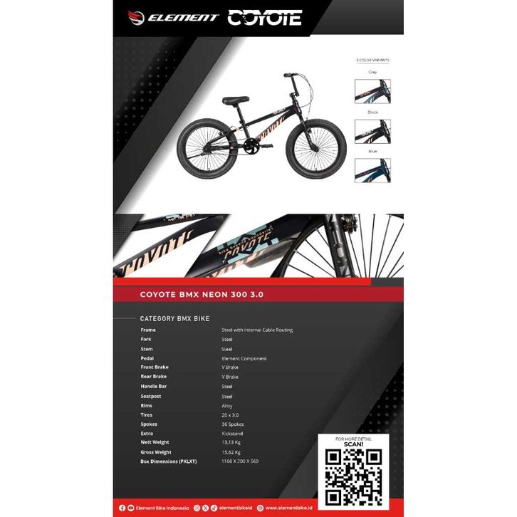 BMX 20" INCH NEON 300 VBRAKE / 300D DISCBRAKE BAN 3.0 / BAN GEDE COYOTE BY ELEMENT ORIGINAL - Sepeda Anak Laki