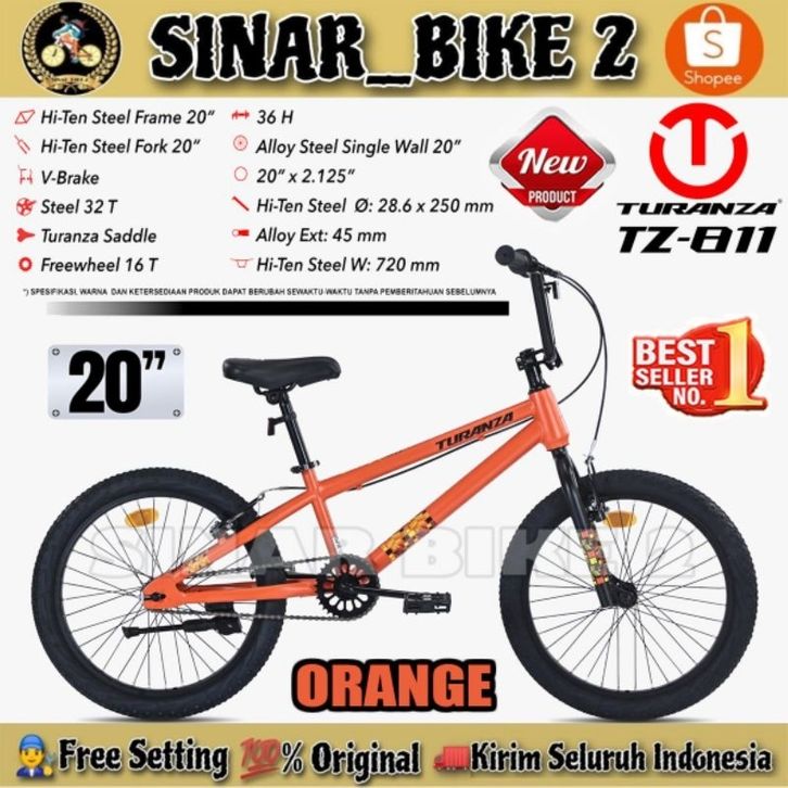 Sepeda Anak Laki BMX TURANZA TZ 811 Ukuran 20 Inch Usia 8-11 Tahun