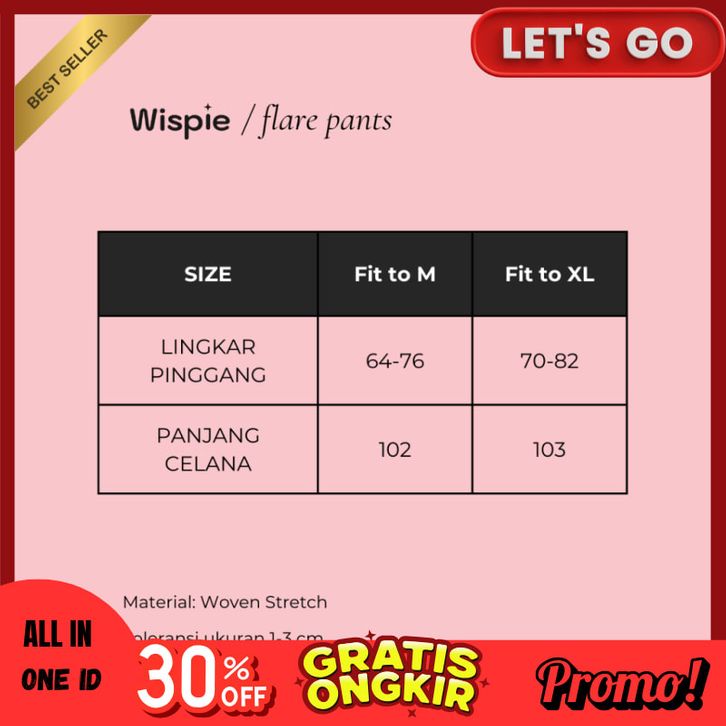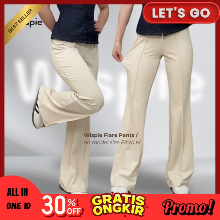 Wispie Flare Pants | Celana Panjang Cutbray Wanita High Waist Kulot Hitam Cream