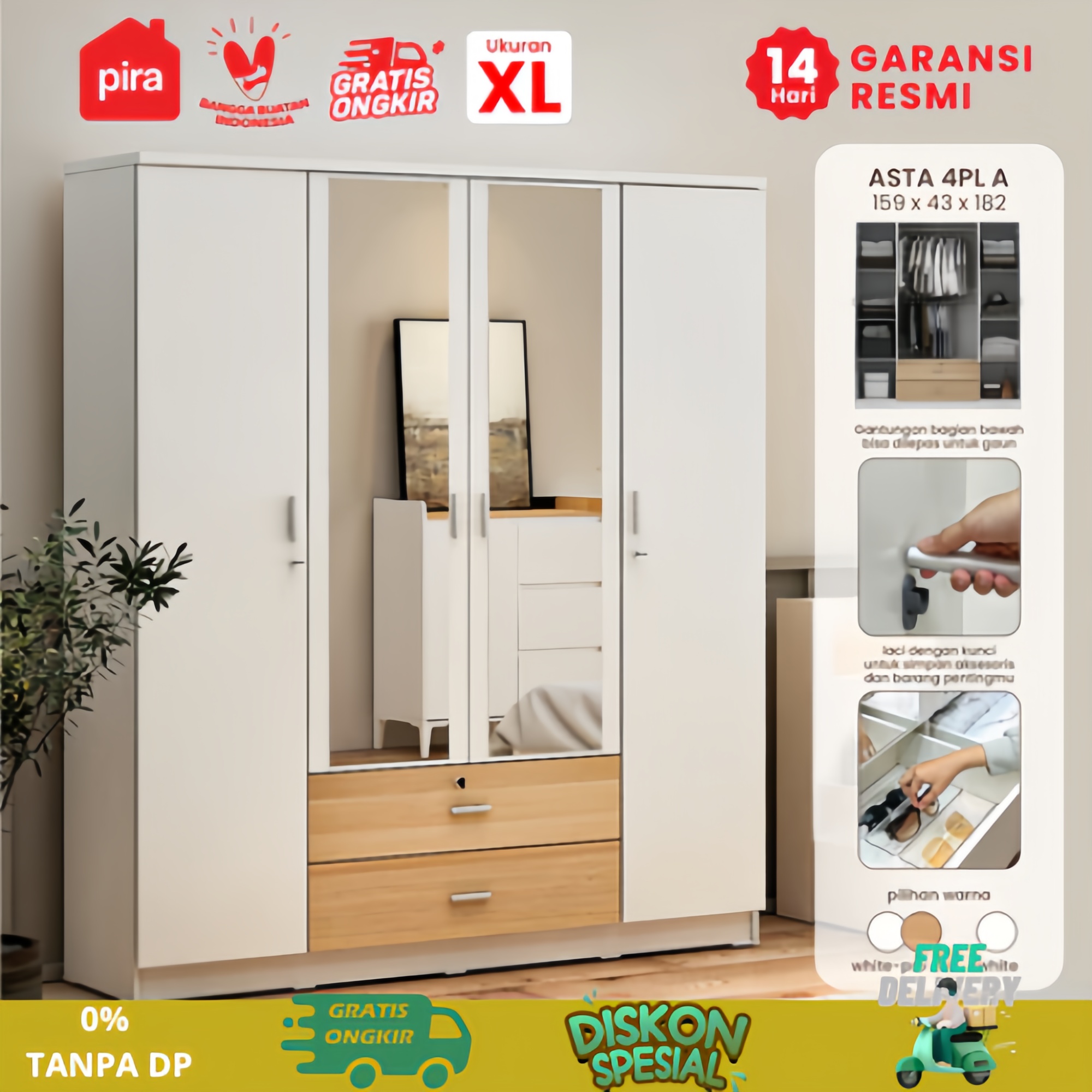 [Star] lemari pakaian minimalis PIRA METROPOLIS OX - ASTA 4PL A Lemari Pakaian 4 Pintu dengan Laci TERLARIS