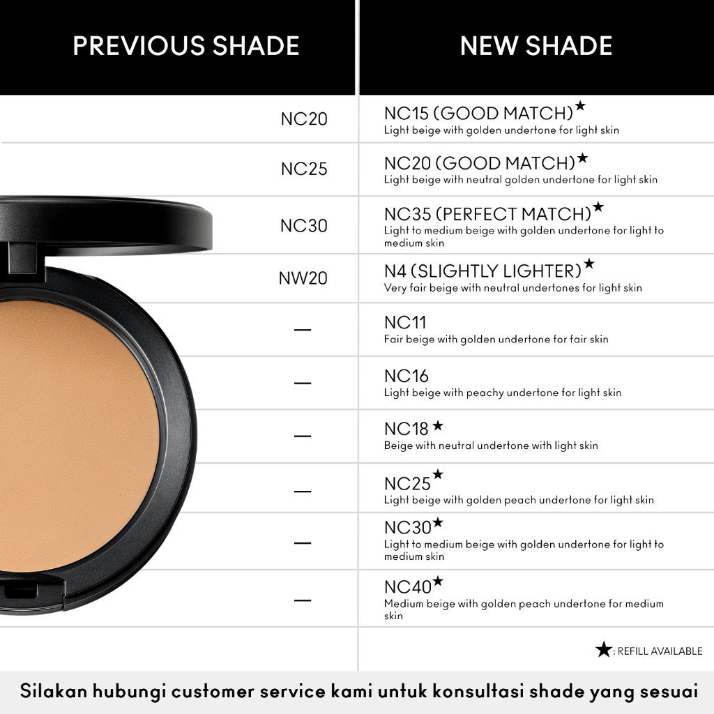BEDAK PADAT MAC STUDIO FIX POWDER PLUS FOUNDATION/ MATTE FINISH 24 HR OIL-CONTROL (12 SHADES) BEST SELLER