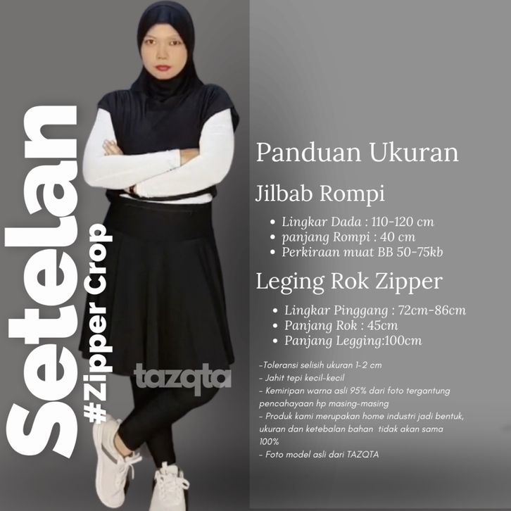 Baju Olahraga Wanita Muslim Setelan Leging Rok Zipper Jilbab Rompi Crop Baju Gym Jogging Fitness Senam Simple Terbaru