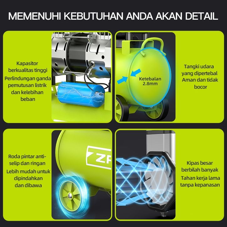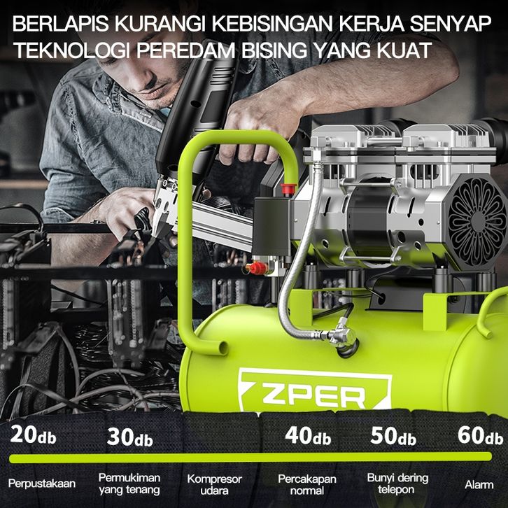 ZPER Kompresor Angin Listrik 20L Oilless Alat Compressor Angin Listrik