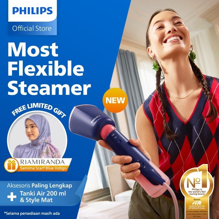 SETRIKA UAP LISTRIK PHILIPS HANDHELD STEAMER 5000 SERIES STH5030/20 BIRU STH5020/40 MERAH FLEKSIBEL PORTABEL