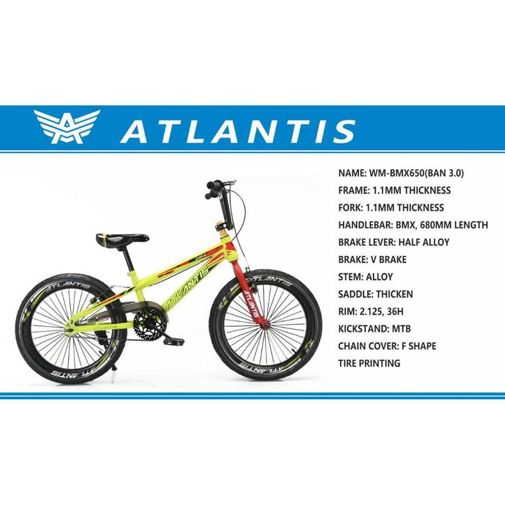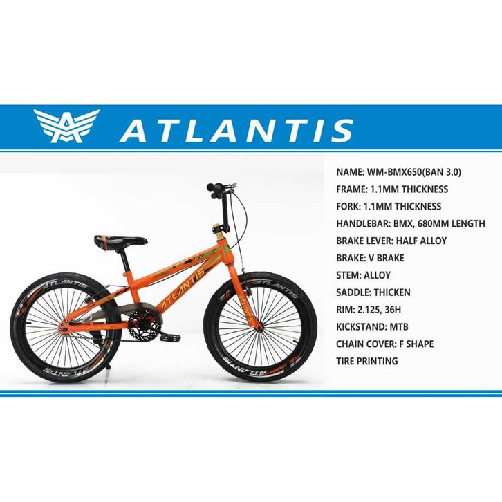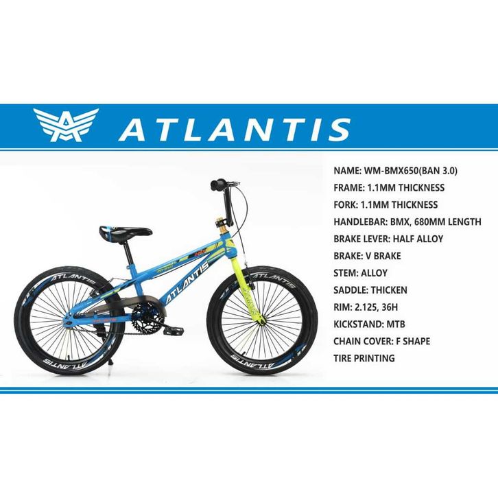 SEPEDA BMX 20" ATLANTIS AT 650 Ban Luar JUMBO 3.0 WARNA anak usia 9 tahun-remaja