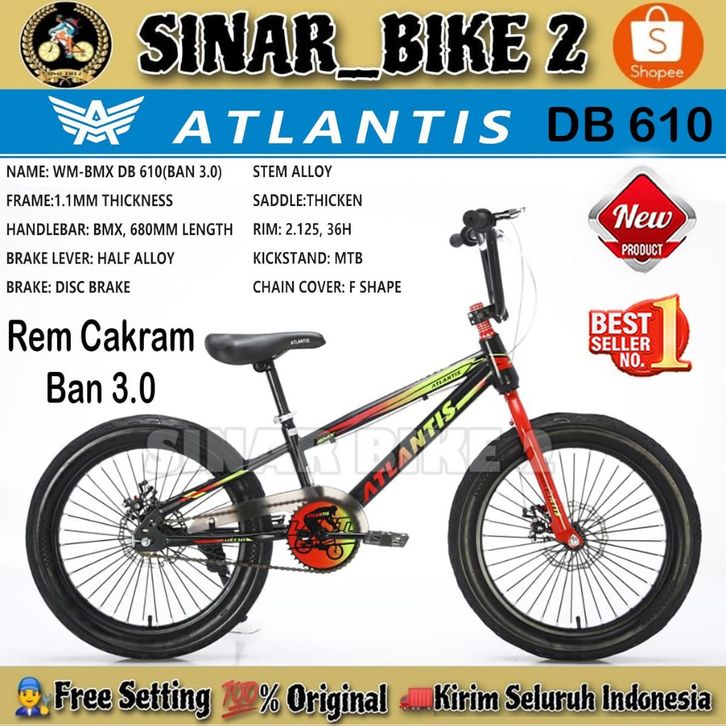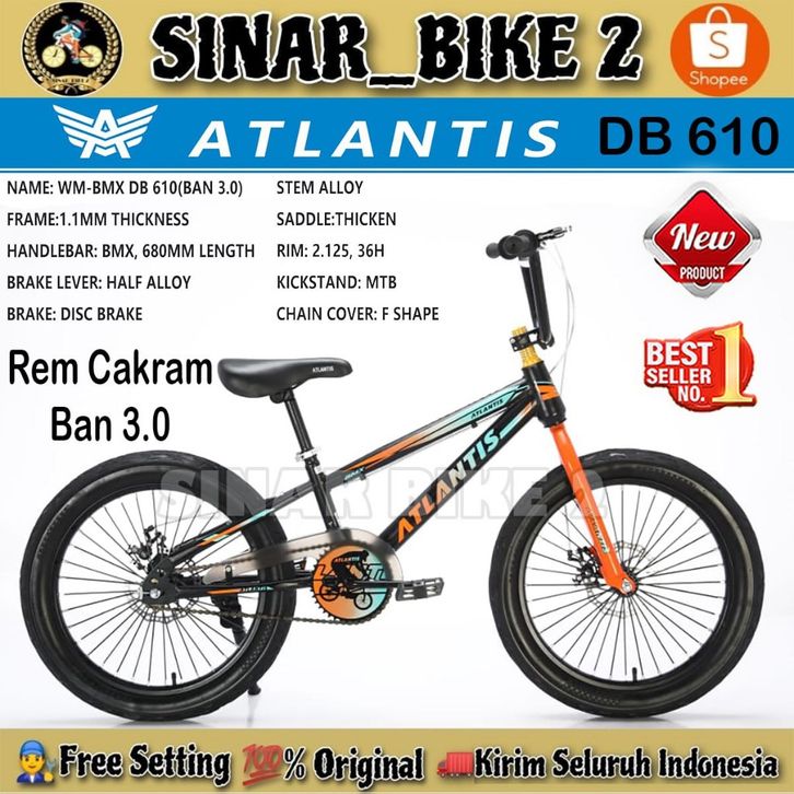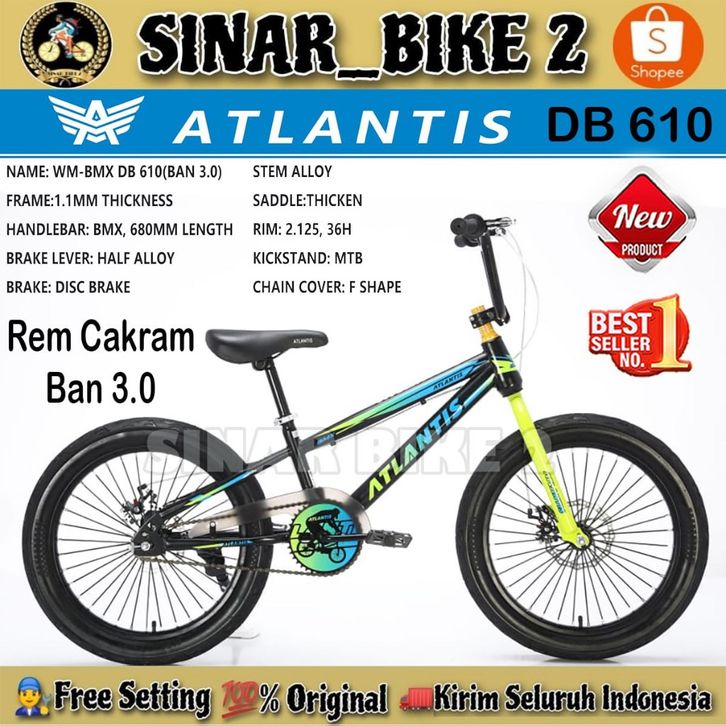 Sepeda Anak Laki BMX ATLANTIS AT BM 610 DB 20 Inch Ban 3.0 Cakram