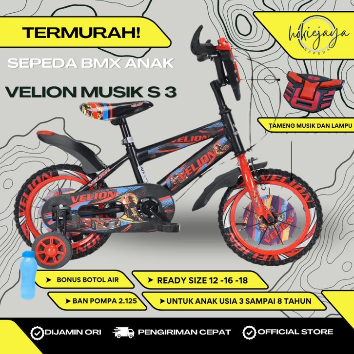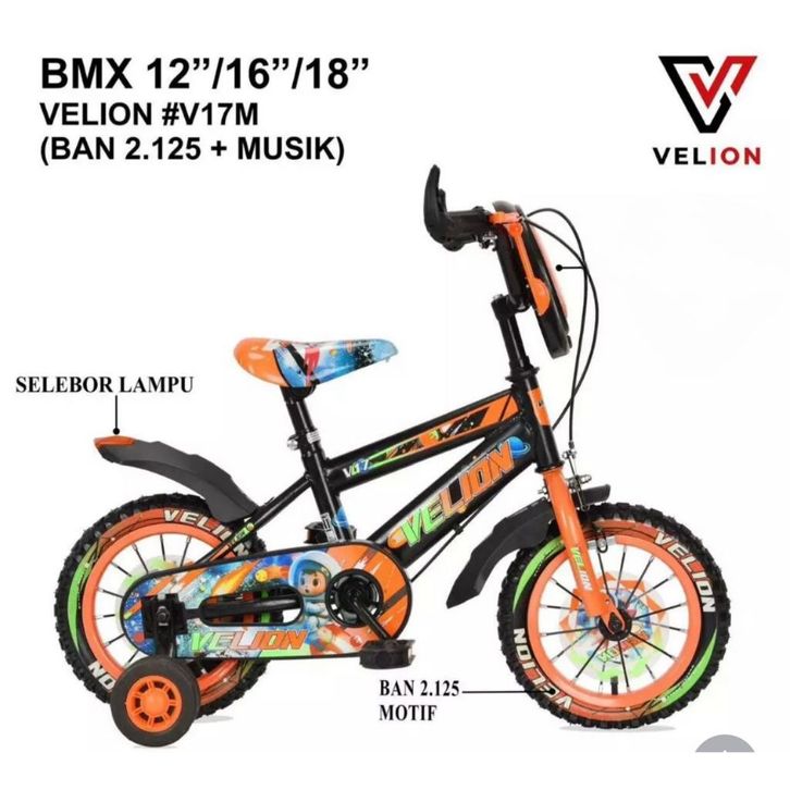 Sepeda BMX Anak VELION SALVO BAN Pompa - MUSIK DAN LAMPU anak usia 2 - 8 tahun BONUS botol air