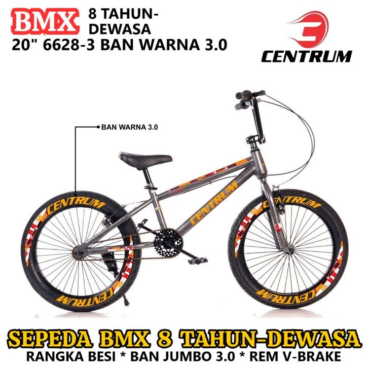 Sepeda BMX Centrum CT6628-3 20" Ban Jumbo Warna 3.0 V-Brake Rangka Steel Anak 8 Tahun-Remaja-Dewasa