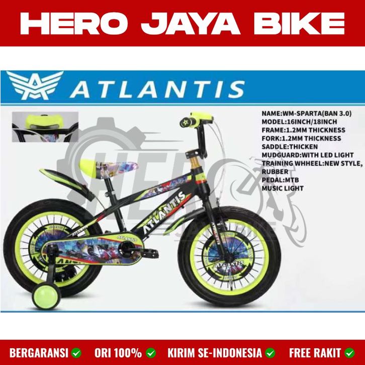 Sepeda Anak Laki BMX ATLANTIS SPARTA NEW Ukuran 12, 16 & 18Inch Ban Jumbo 3.0 Music Lampu, Sepeda Anak Usia 3-8Tahun