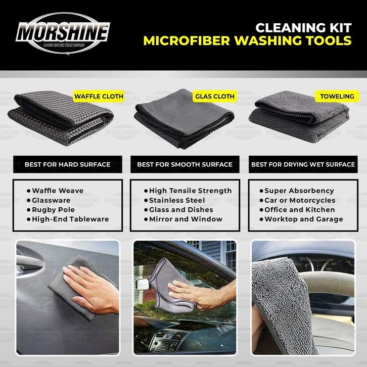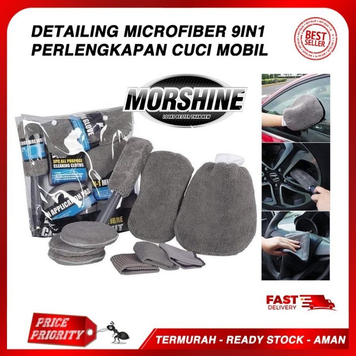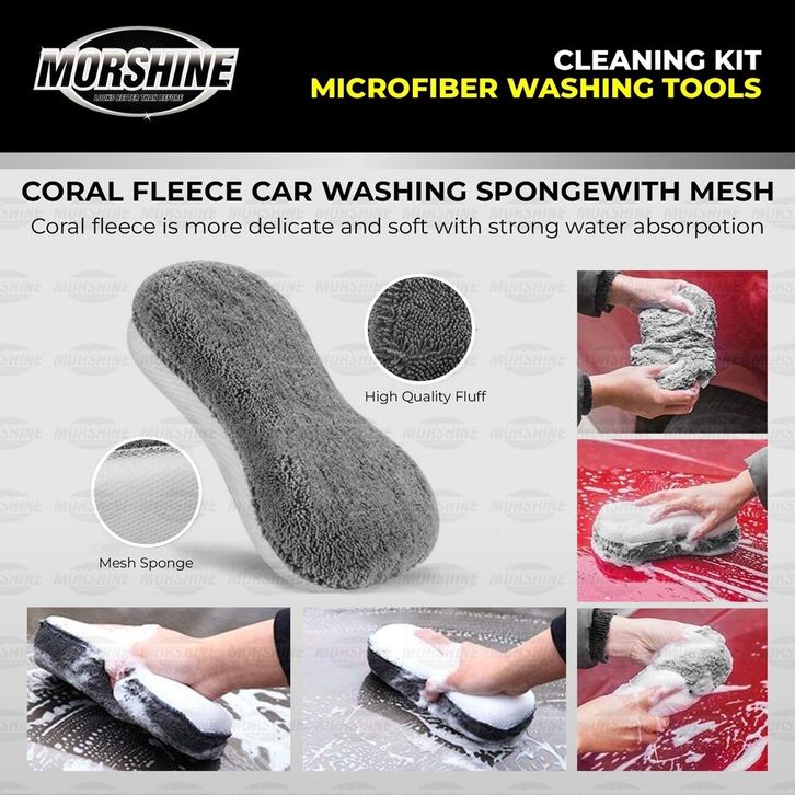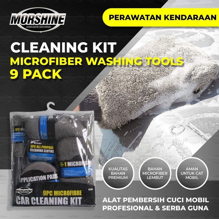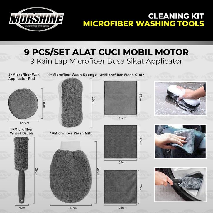 Lap Kanebo MORSHINE Alat Cuci Mobil Motor Kain Lap Sponge Busa Microfiber Halus Lembut Lengkap SET 9pc