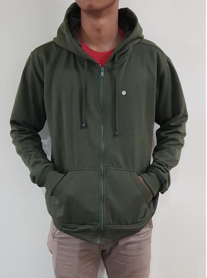 (PROMO) Jaket Hoodie Zipper Resleting Hijau Army / Hijau Tua