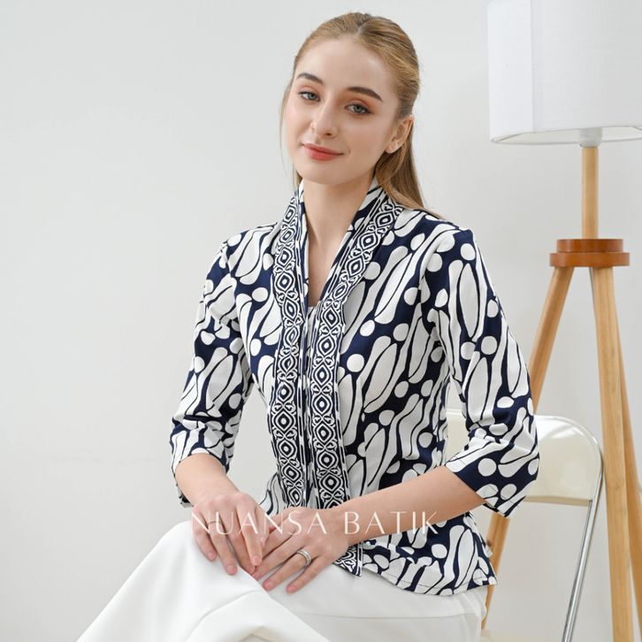 EKSKLUSIF Nuansa Batik Blouse Batik Model Kutu Baru Lengan 7/8 Bahan Katun Stretch afirl