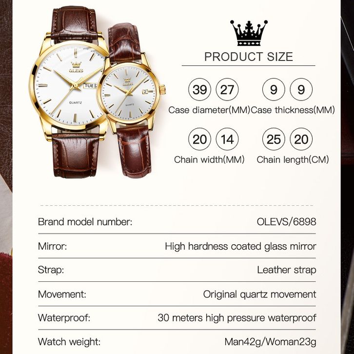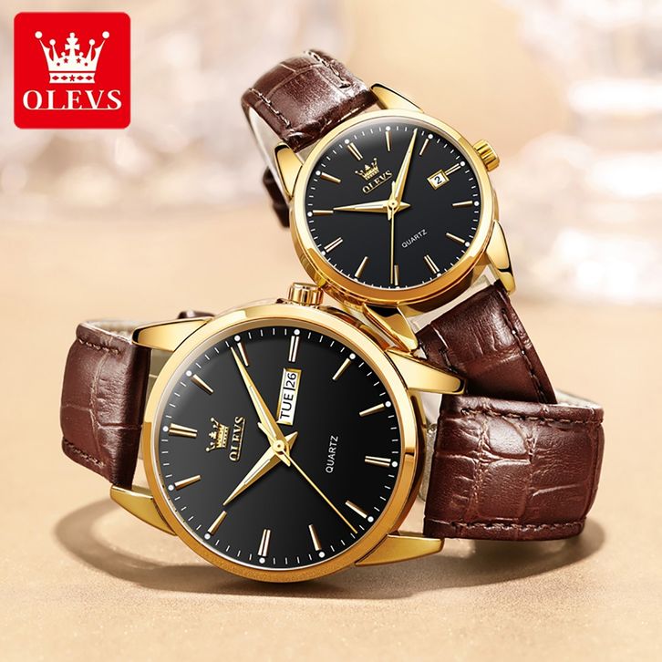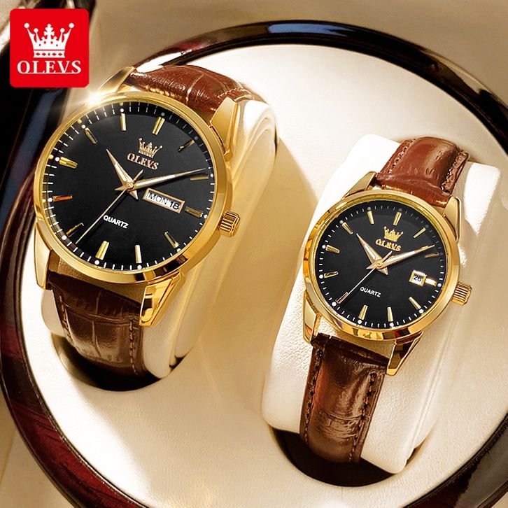 ORIGINAL OLEVS Jam Tangan Couple Pria Wanita Original Anti Air Analog Kulit Terbaru 2025 Tanggal Otomatis Kuarsa