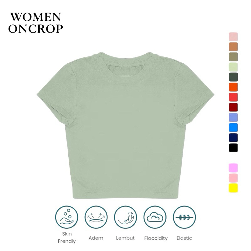 BASIC CROP T0P SLIM FIT LENGAN PENDEK KAOS CROP TEE Crop Top Baju Wanita Crop Top Korea Crop Tee