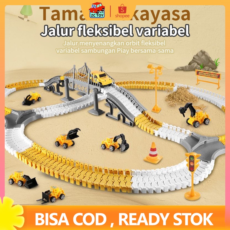 ZCTOY DIY TRACK LISTRIK ENGINEERING MOBIL DIRAKIT JALUR KERETA API MAINAN ANAK-ANAK