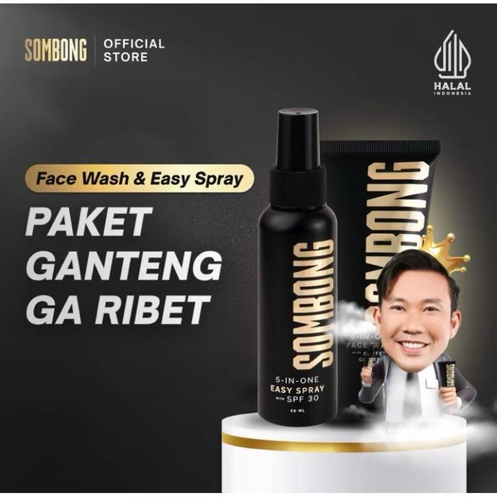 Sombong Ready Ganteng Ga Ribet 5-In-1 Face Wash Sabun Cuci Muka Pria + Easy Spray With SPF30 Sunscreen Skincare