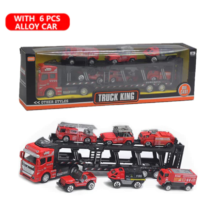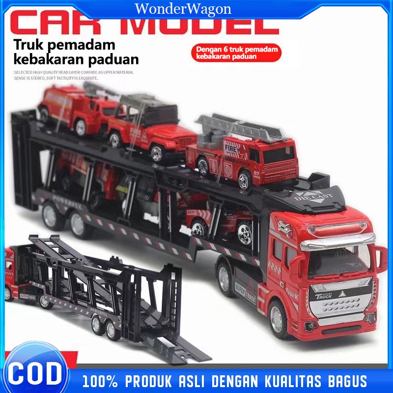 WONDERWAGON TRUK PEMADAM KEBAKARAN PADUAN MODEL DENGAN 6+1PEMADAM KEBAKARAN MAINAN MOBIL-MOBILAN MAINAN MOBIL PULL BACK PADUAN KENDARAAN TRUK