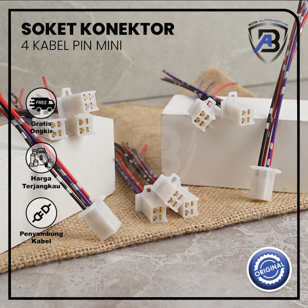 SOKET SAMBUNG 4 PIN KECIL MINI SOCKET KABEL KONEKTOR MOBIL MOTOR (1 SET)