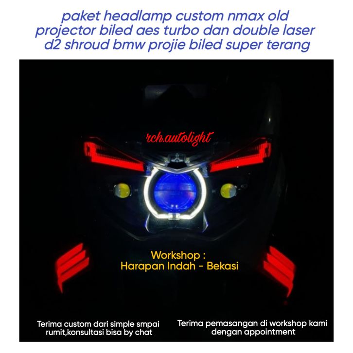 paket headlamp custom nmax old projector biled aes turbo dan double laser d2 shroud bmw projie biled super terang