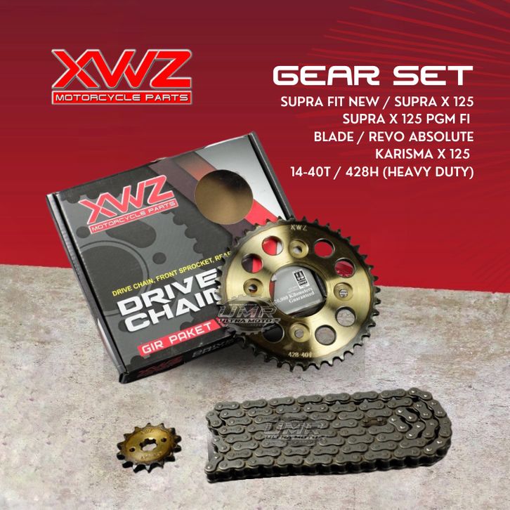 GEAR GIR SET GIR PAKET SUPRA X 125 FI SUPRA FIT NEW KARISMA REVO 428H HEAVY DUTY XWZ