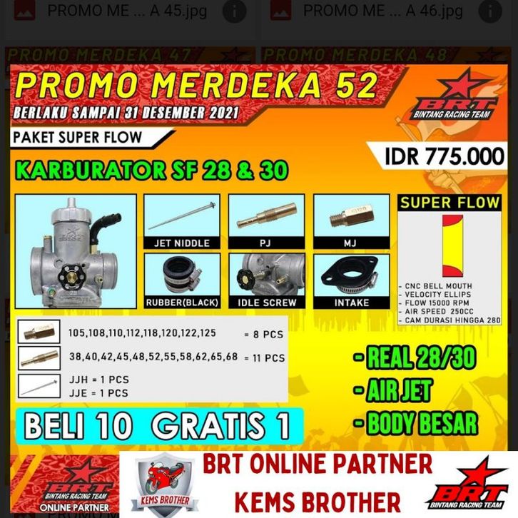 KARBURATOR SUPER FLOW ORIGINAL BRT SF 24MM 26MM 28MM 30MM Carburator Karbu