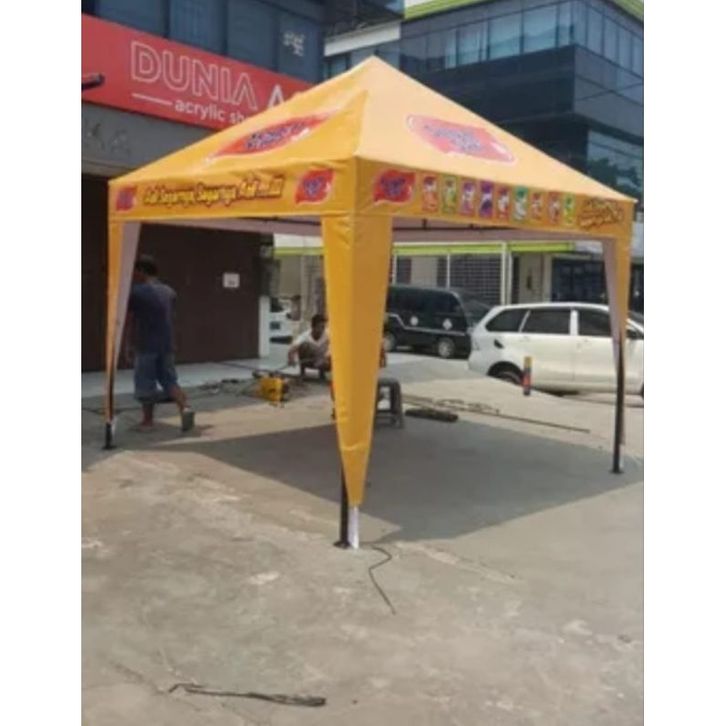 Tenda kave ukuran 3x3 atap printing rangka doble deck