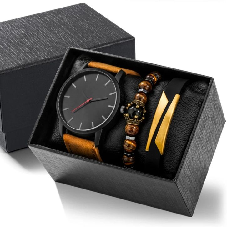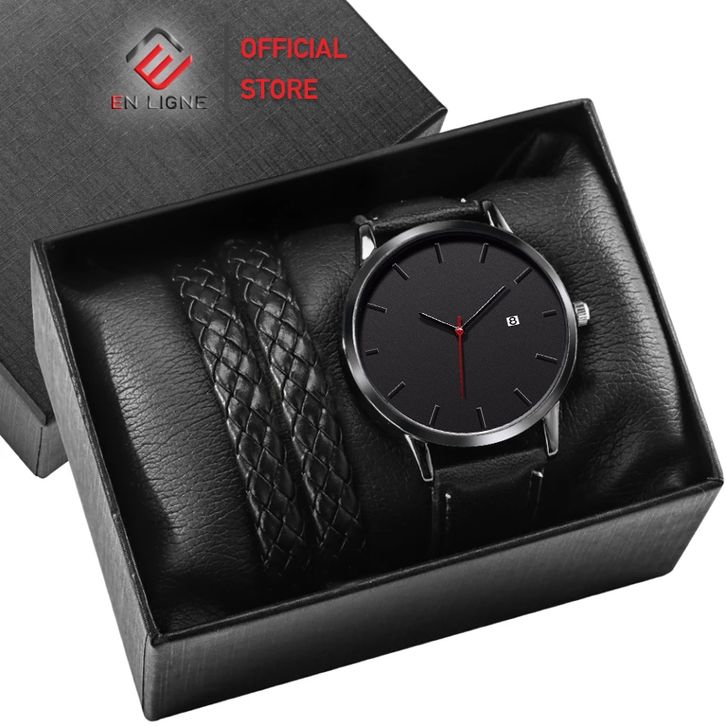 PROMO En Ligne - Jam Tangan Pria Kasual Kulit Tanggal Pria Paket Gelang dan Box - Jam Tangan Kado - Jam Tangan