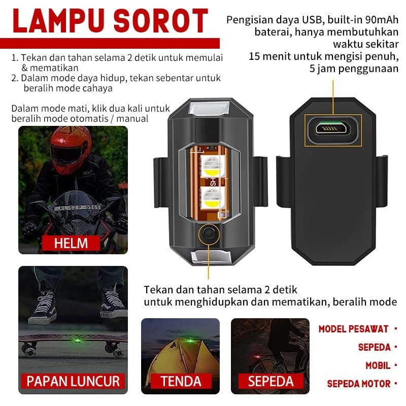 ARIDOO Tujuh Warna Lampu LED Motor Kedip Pesawat RGB Strobo Universal Tahan Air Pesawat Lampu