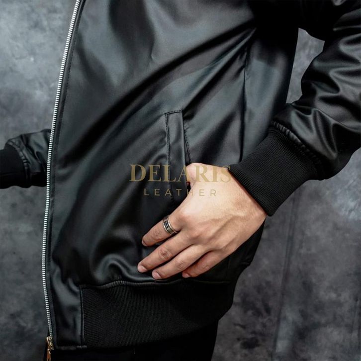 Delaris Jaket Kemeja Bomber Pria Slimfit Retro Viena Leather Grade A | Hitam