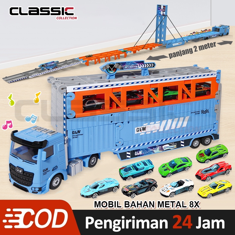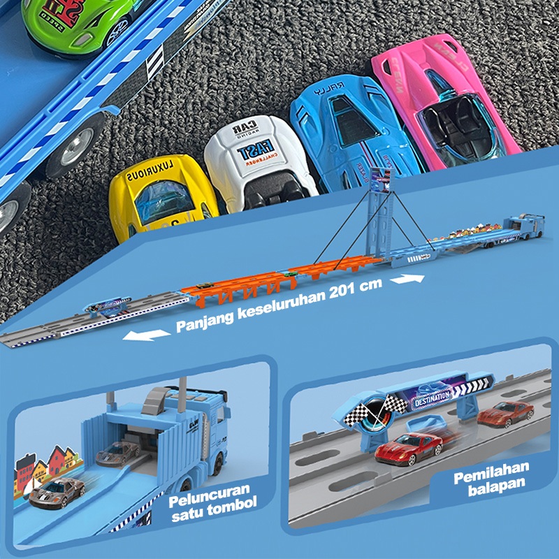 MOBIL TRUK CONTAINER MAINAN HAULER TRUK DENGAN LINTASAN BALAP EJEKSI LIPAT JALUR