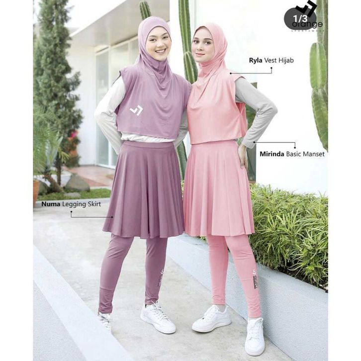 Satu Set Stelan Olahraga Rompi Hijab Legging Rok Wanita Sepeda Gym Running Ryla X Numa Sporty Set