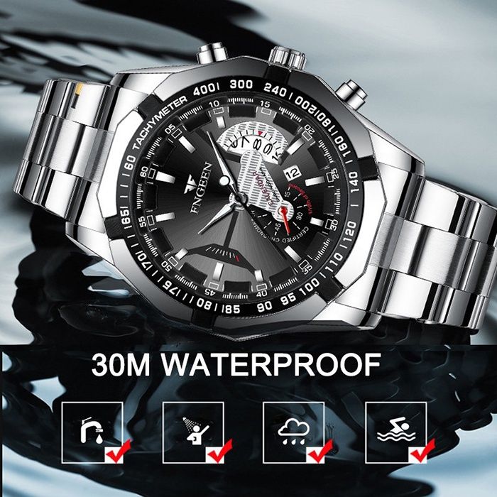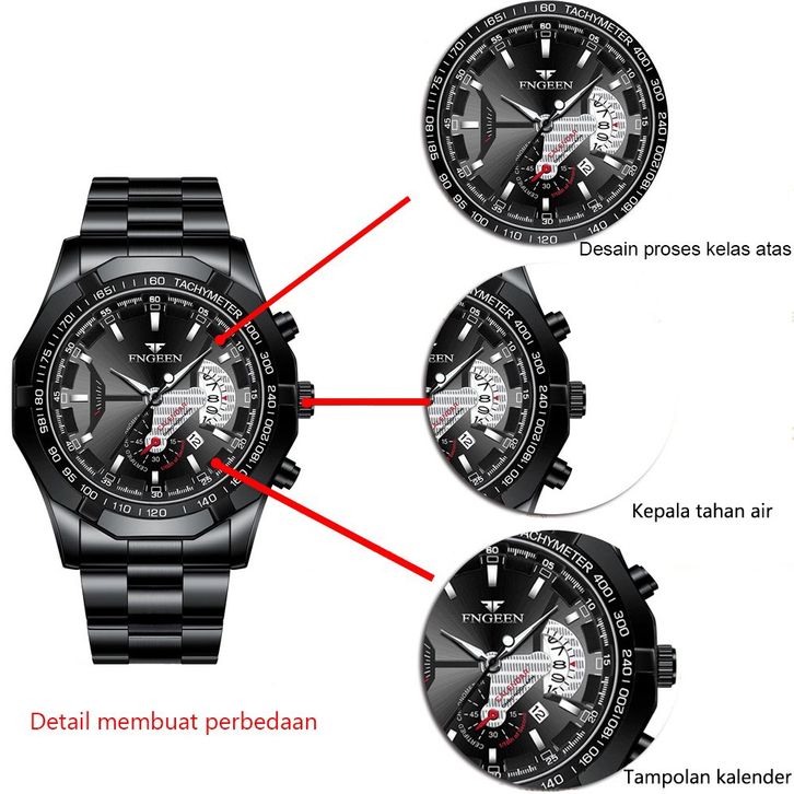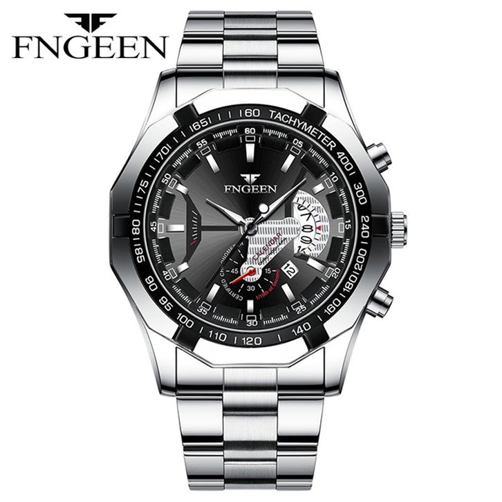 NEW Arrival FNGEEN S001 Jam Tangan Pria Luxury Stainless Steel Quartz Original Tahan Air Watch + Kotak Gratis