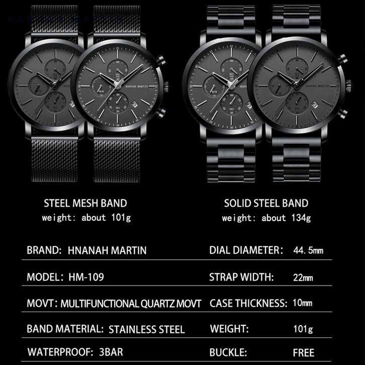 PROMO HANNAH MARTIN Jam Tangan Pria Original Tahan air COWOK Kronograf Quartz Analog Laki 109G uforg