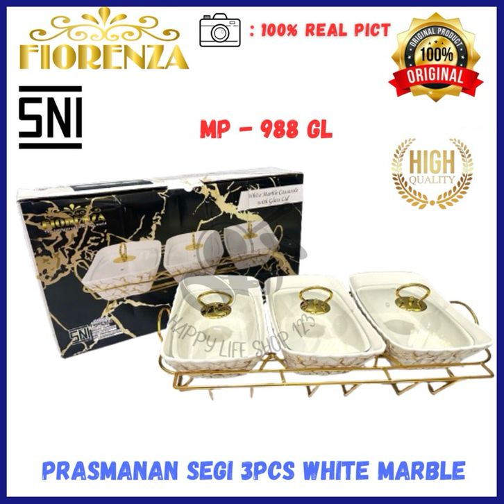 Prasmanan Set Segi Isi 3 + Tutup + Rak MP 988 GL / Prasmanan Keramik FIORENZA / FIORENZA Prasmanan Segi 3pcs