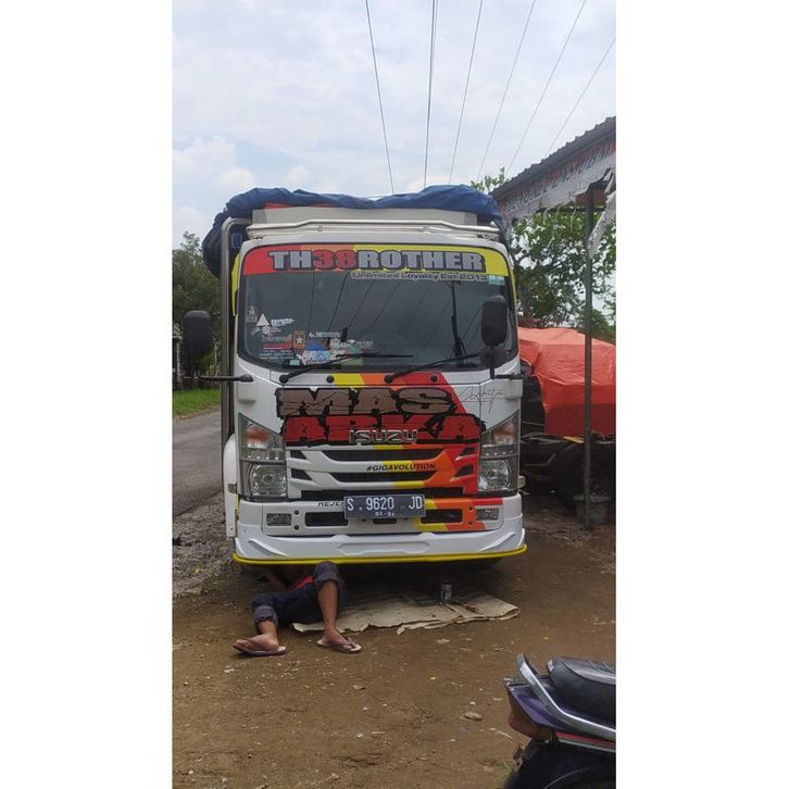 Spoiler Canter tambahan bemper mbois bahan plat besi sudah sama pijakan kaki kondisi pox.y variasi truk canter