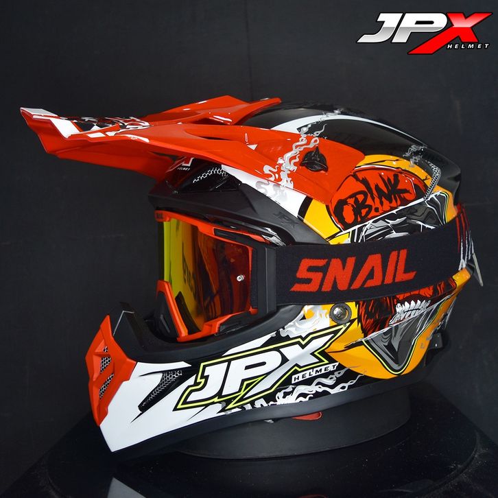 HELM JPX CROSS_FOX1 X38 - BLACK GLOSSY\DOFF PAKET GANTENG GOOGLE SNAIL HELM JPX KLX ORIGINAL HELMET MOTO TRAIL