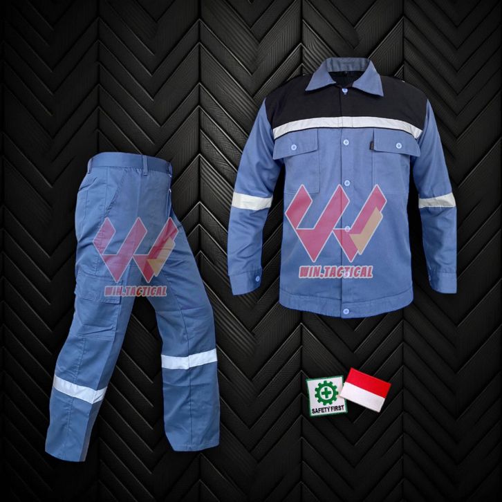 [Star] Setelan Seragam Safety Tangan Panjang Kombinasi Seragam Proyek Seragam Lapangan Skotlet Wearpack Atasan Katelpak
