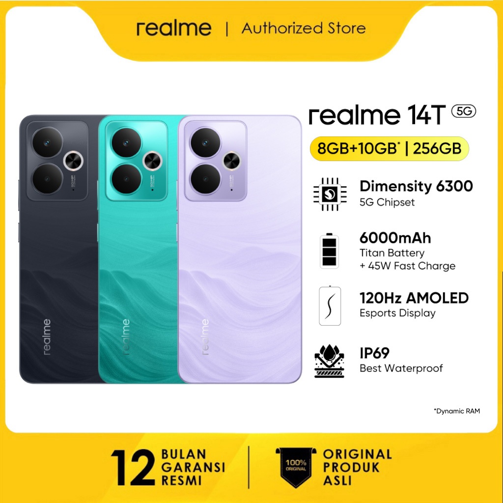 Hp realme 14T 5G 8GB+128GB| 8GB+256GB| (Dimensity 6300 5G Chipset | 6000mAh Titan Battery | 45W Fast Charge | IP69 Best