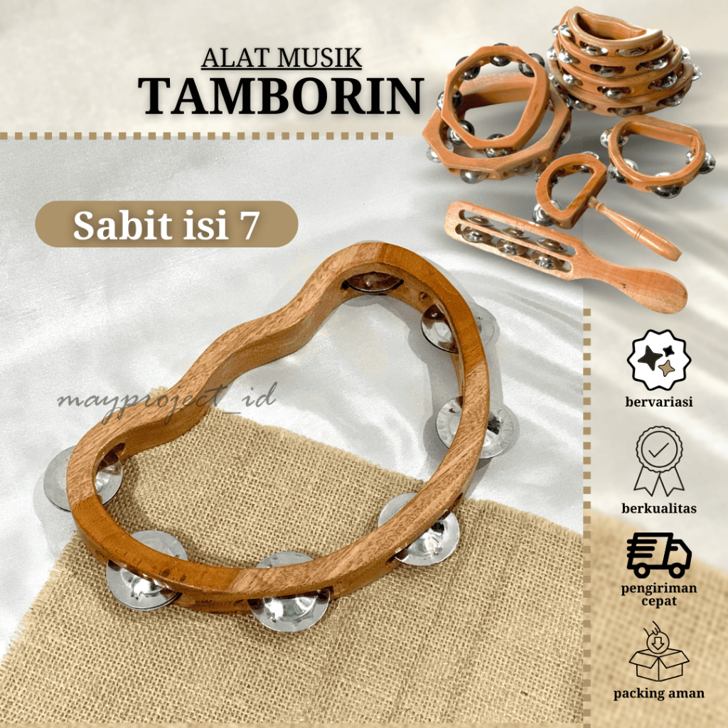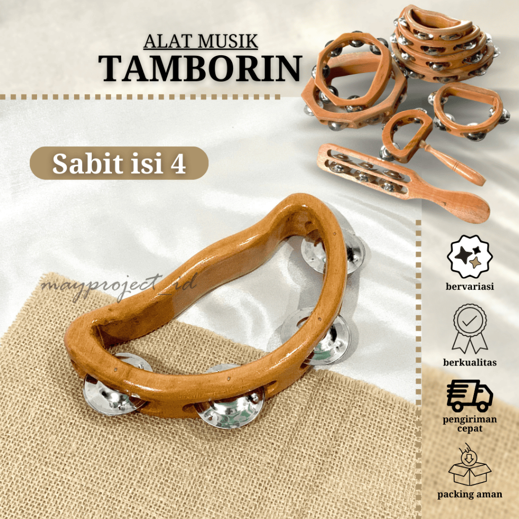 TAMBORIN KAYU KECREKAN TAMBOURINE ALAT MUSIK PERKUSI