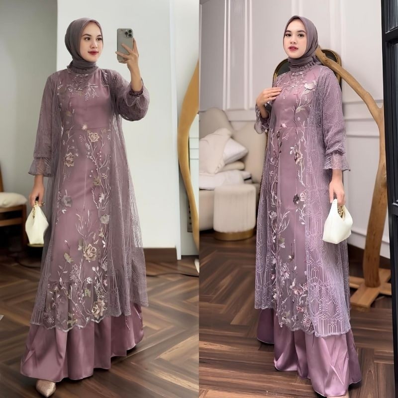 ZEYA DRESS PESTA BRUKAT TILLE PREMIUM LEBARAN GAMIS PESTA MEWAH BAHAN MAXMARA MIX BROKAT TIMBUL
