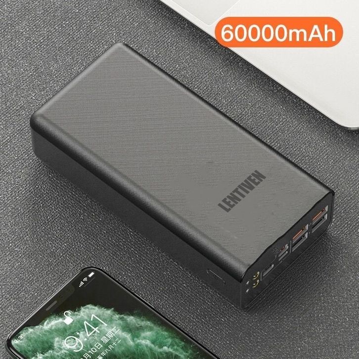 Tiga Warna Primer Power Bank 60000mAh 4 USB Fast Charging LED Digital Display Portable