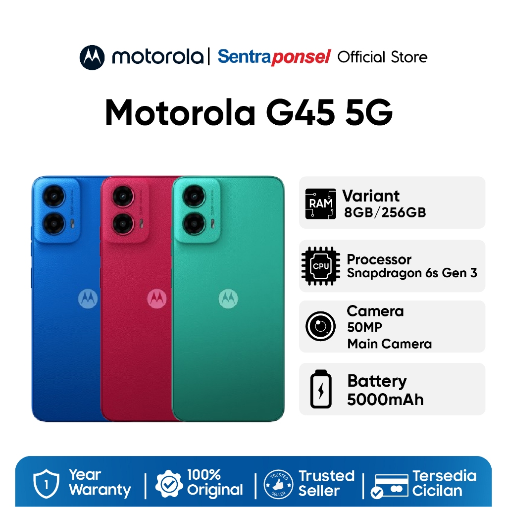 Motorola g45 5g 8/256gb - up to 16gb extended ram - snapdragon 6s gen 3 - 6.5 inch screen size - gorilla glass 3