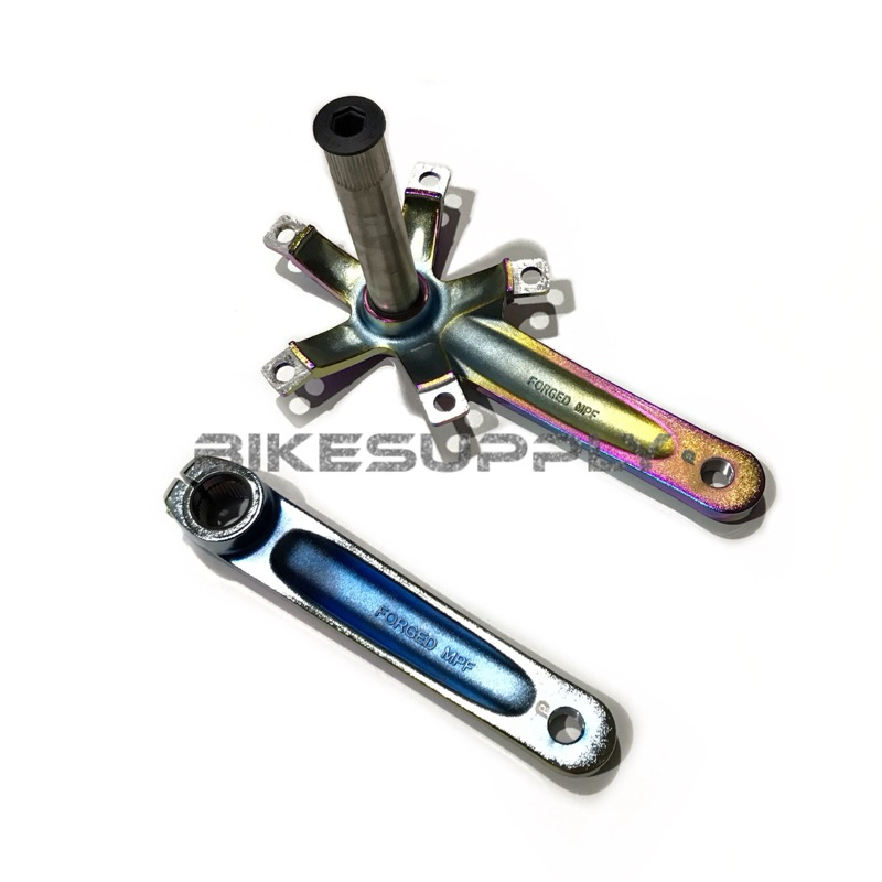 Arm Crank Piringan + BB Hollowtech 2 HT 2 HT2 Sepeda Merk Litepro Warna Rainbow Pelangi BCD 130 Mm 5 Lubang Baut Bolts