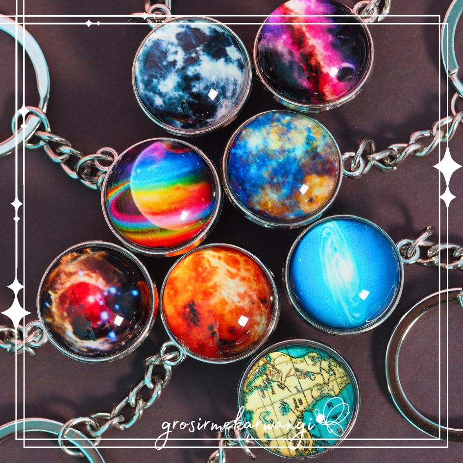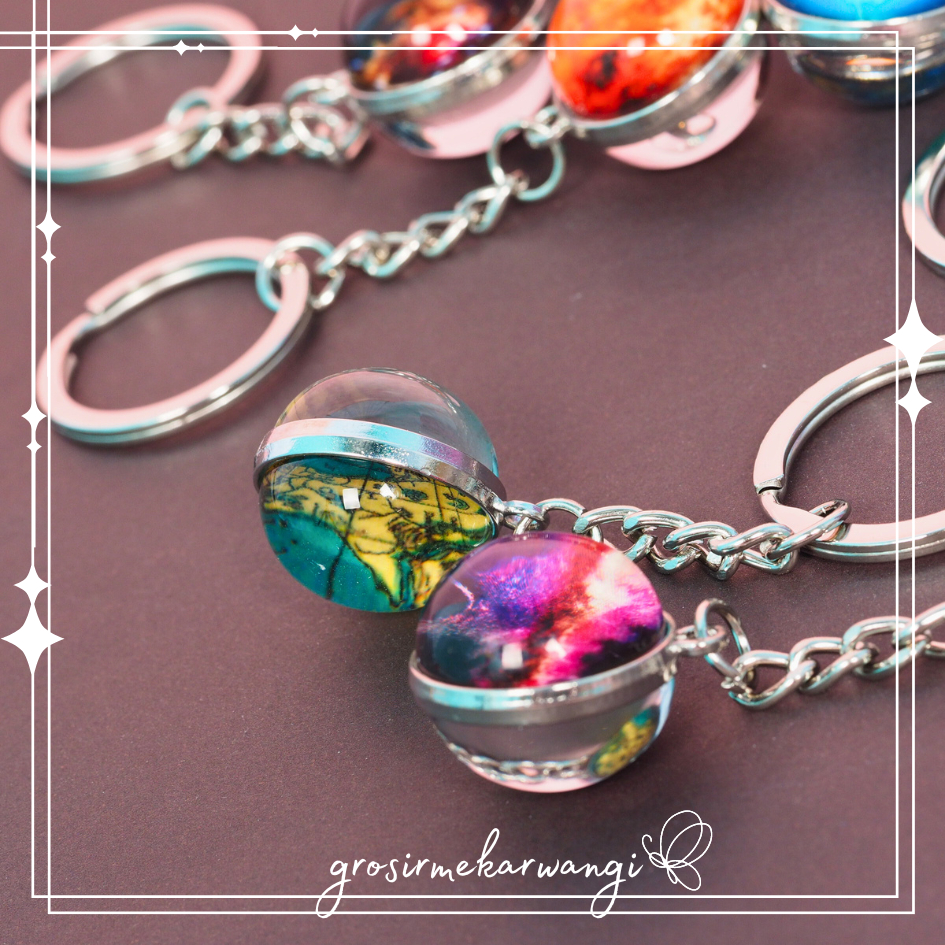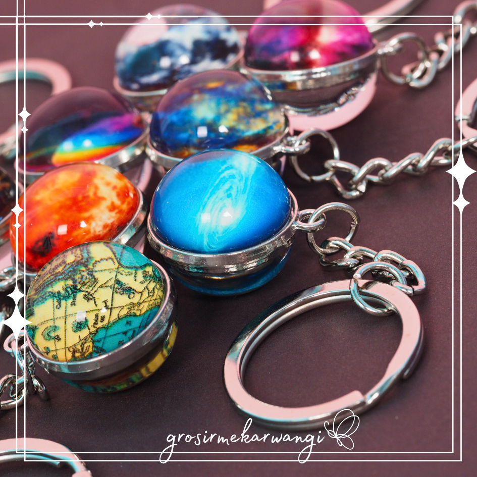 Gantungan Kunci Bola Planet Dunia Antariksa Galaksi Luar Angkasa Peta 3D Glow in The Dark Mainan Souvenir Hadiah Ulang T