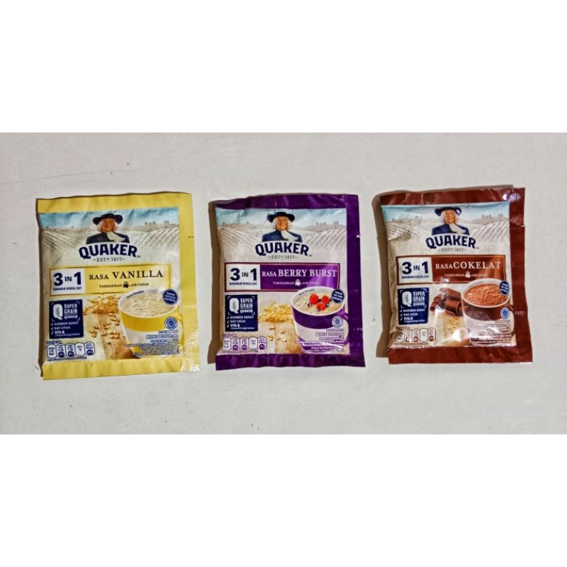 Quaker 3in1 Rasa Vanilla || Coklat || Berry Burst Minuman Sereal Oat per pcs 28gr